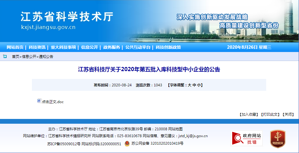 為了推進(jìn)自主創(chuàng)新、加快企業(yè)產(chǎn)業(yè)結(jié)構(gòu)調(diào)整,貫徹落實(shí)國(guó)家創(chuàng)新驅(qū)動(dòng)發(fā)展戰(zhàn)略,加大對(duì)科技型企業(yè)的扶持與培養(yǎng),全力助推企業(yè)持續(xù)健康發(fā)展,在各設(shè)區(qū)市評(píng)價(jià)工作機(jī)構(gòu)審核中,江蘇海辰云科入選2020年第五批科技型中小企業(yè)。8月24日江蘇省科技廳關(guān)于2020年第五批入庫(kù)科技型中小企業(yè)進(jìn)行了發(fā)布。
